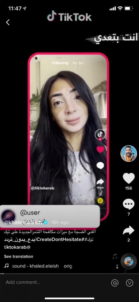 شارك في حملة “أبدع بدون تردد” كلًا من الإعلامي خالد عليش يارا والبلوجر لُجين صلاح والفنان كريم عفيفي وغيرهم من النجوم الذين شاركوا بمقاطع مُصورة في إطار الحملة لحث رواد التطبيق ومستخدميه على الابتعاد عن التنمر والتحرش الإلكتروني. وتأتي هذه الحملة في إطار استمرار جهود تيك توك على خلق بيئة إيجابية لمستخدميها من مختلف الأعمار ومحاربة الاستخدامات والممارسات السيئة، بهدف جعل فضاء التواصل الاجتماعي مكانًا أكثر أمانًا ليتمكن المستخدمين من الإبداع بدون تردد أو خوف من التنمر أو التحرش أو التعليقات المسيئة.