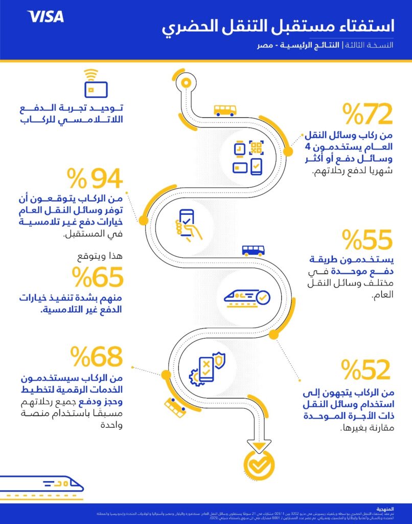“فيزا”: 94% من مستخدمي وسائل النقل بمصر يتوقعون توفير خيارات دفع غير تلامسية