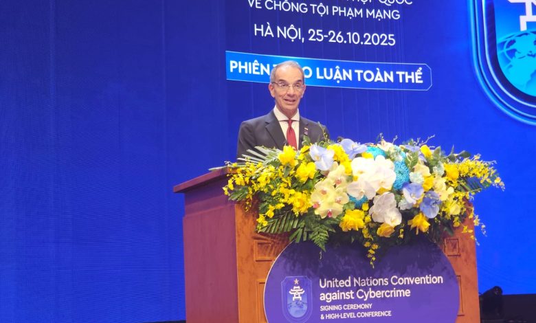 وقعت مصر على اتفاقية الأمم المتحدة لمكافحة الجريمة السيبرانية خلال فعاليات المؤتمر الذى استضافته العاصمة الفيتنامية هانوى؛ حيث قام بالتوقيع الدكتور عمرو طلعت وزير الاتصالات وتكنولوجيا المعلومات، رئيس وفد مصر رفيع المستوى المشارك فى مراسم التوقيع التى شهدها لوونج كونج رئيس جمهورية فيتنام الاشتراكية، وأنطونيو جوتيريش الأمين العام للأمم المتحدة، والدكتورة غادة والى المديرة التنفيذية لمكتب الأمم المتحدة المعنى بالمخدرات والجريمة، والسفير هانى مصطفى سفير جمهورية مصر العربية بجمهورية فيتنام، ورؤساء وفود الدول المشاركة في المؤتمر.