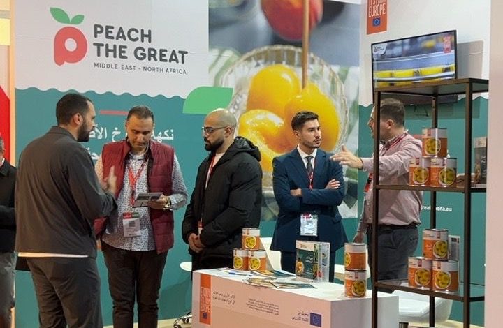 تصدَّر الخوخ الأوروبي المُعلّب المشهد في معرض فوود أفريكا 2025 هذا العام في القاهرة، وذلك في إطار حملة الاتحاد الأوروبي الترويجية الجديدة “الترويج للخوخ عالي الجودة في الشرق الأوسط وشمال أفريقيا”. وتهدف هذه المبادرة، الممولة جزئيًا من الاتحاد الأوروبي ضمن برنامج AGRIP SIMPLE 2024، إلى تعزيز الوعي بالخوخ الأوروبي المُصنّع وتشجيع الإقبال عليه في أسواق الشرق الأوسط وشمال أفريقيا.