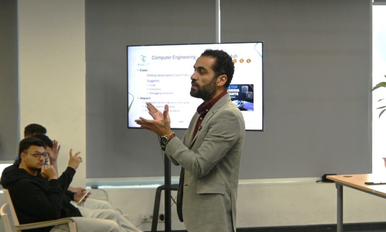 وأضاف أن التفاعل الذي شهده اللقاء يعكس وعي طلاب هندسة الكمبيوتر بأهمية تطوير مهاراتهم، حيث طرحوا العديد من التساؤلات حول مستقبل الوظائف المرتبطة بالذكاء الاصطناعي، والمسارات الأكثر طلباً في السوق، مؤكداً أن هناك اهتماماً ملحوظاً ببرامج مثل “AI Developer” و“AI Vibe Coder”، باعتبارهما من المسارات الحيوية التي تلبي احتياجات سوق العمل الحالي.